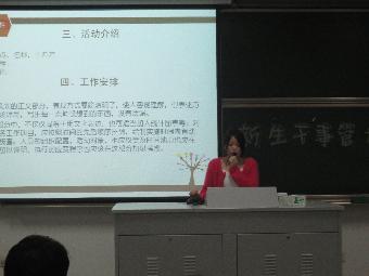 2013年11月7日18点30分,外国语学院13级新生干事管培在致高A116举行。主讲人为2011级校社团联合会主席袁媛同学。