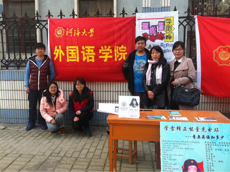 结合专业特色和社会热点,我院志愿者以“学雷锋正能量加油站”为主题,开展了废旧电池回收、迎青奥日常英语互动教学、助人为乐英语箴言分享三项活动。活动受到了学校师生、社区居民的欢迎,大家在轻松愉快地氛围中传递互助友爱的正能量,以昂扬积极的精神面貌共同迎接青奥会的召开。