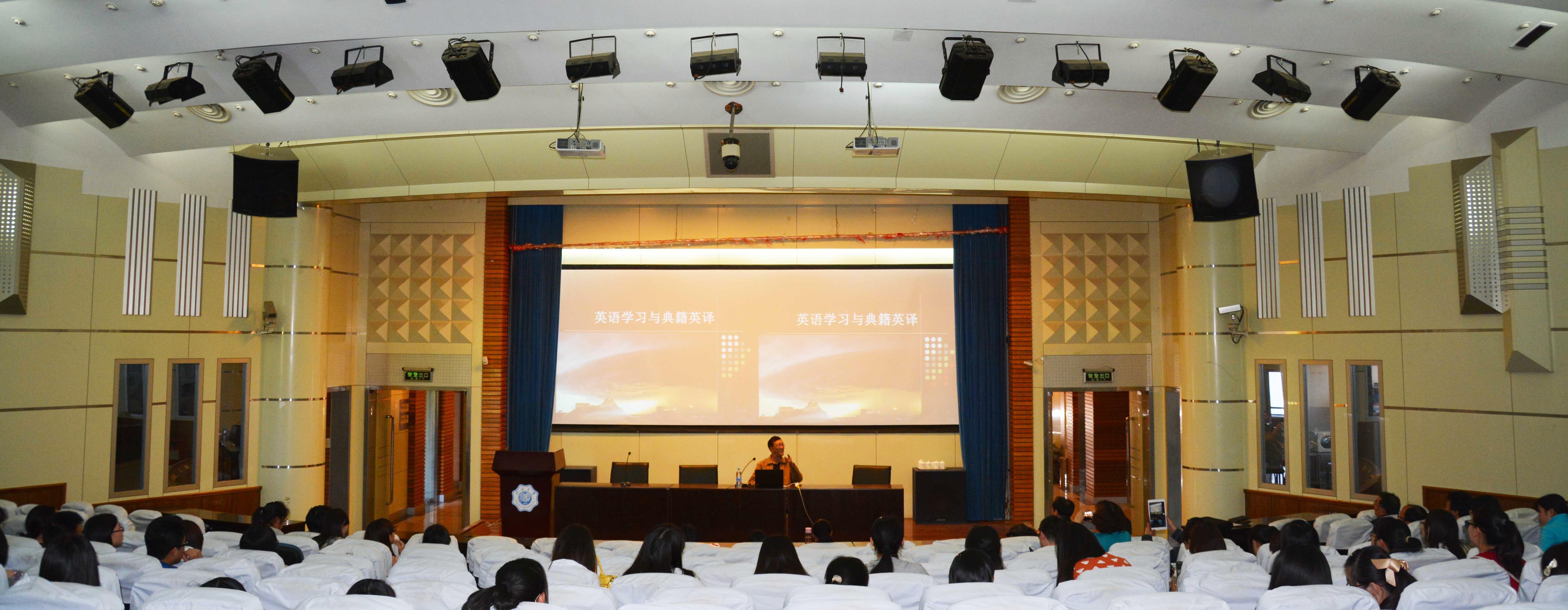 “念天地之悠悠,独怆然而涕下”等古典名句的翻译。同时,汪教授还倾情为同学们推荐了许多有助于了解中国古代典籍的中外作品。