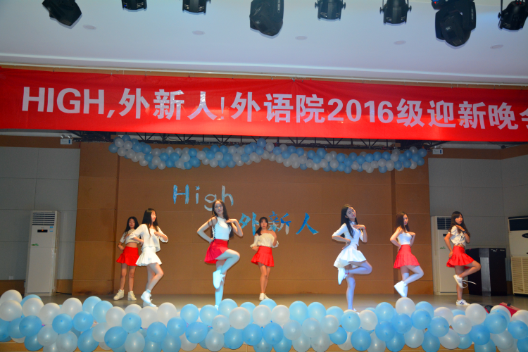 9月25日晚,我院在江宁校区思源楼多功能厅举办“High 外新人”——2016年主题迎新晚会。学院院长蔡斌教授、党委王炎灿书记、副院长杨荣华副教授、党委朱志梅副书记、英语系主任李霄垅副教授,法语系陈思宇老师、外教代表Kaniet、办公室主任吴桦老师、团委书记王璐老师、研究生辅导员罗荣荣老师、本科生教学秘书储晨雪老师、16级本科生辅导员王雪寒老师等教师代表和全体16级外院新生一同观赏了这场青春盛宴。