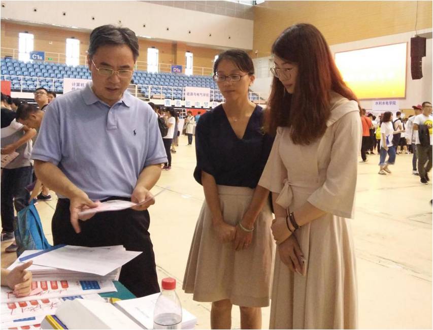 校党委书记唐洪武、校长徐辉、校党委副书记郭继超、学生处长吴红、副处长汤鸣鸿在学院党委副书记朱志梅的陪同下视察我院新生报到点