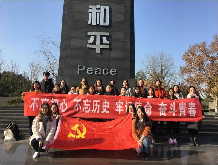 12月17日,为响应十九大号召,深入学习党的十九大精神,践行“两学一做”学习教育,进一步增强党组织生活的吸引力,我院组织近30名学生党员开展了以“不忘初心,不忘历史,牢记使命,奋斗青春”为主题的党日活动,先后参观了侵华日军南京大屠杀遇难同胞纪念馆、渡江胜利纪念馆和青奥文化体育公园。