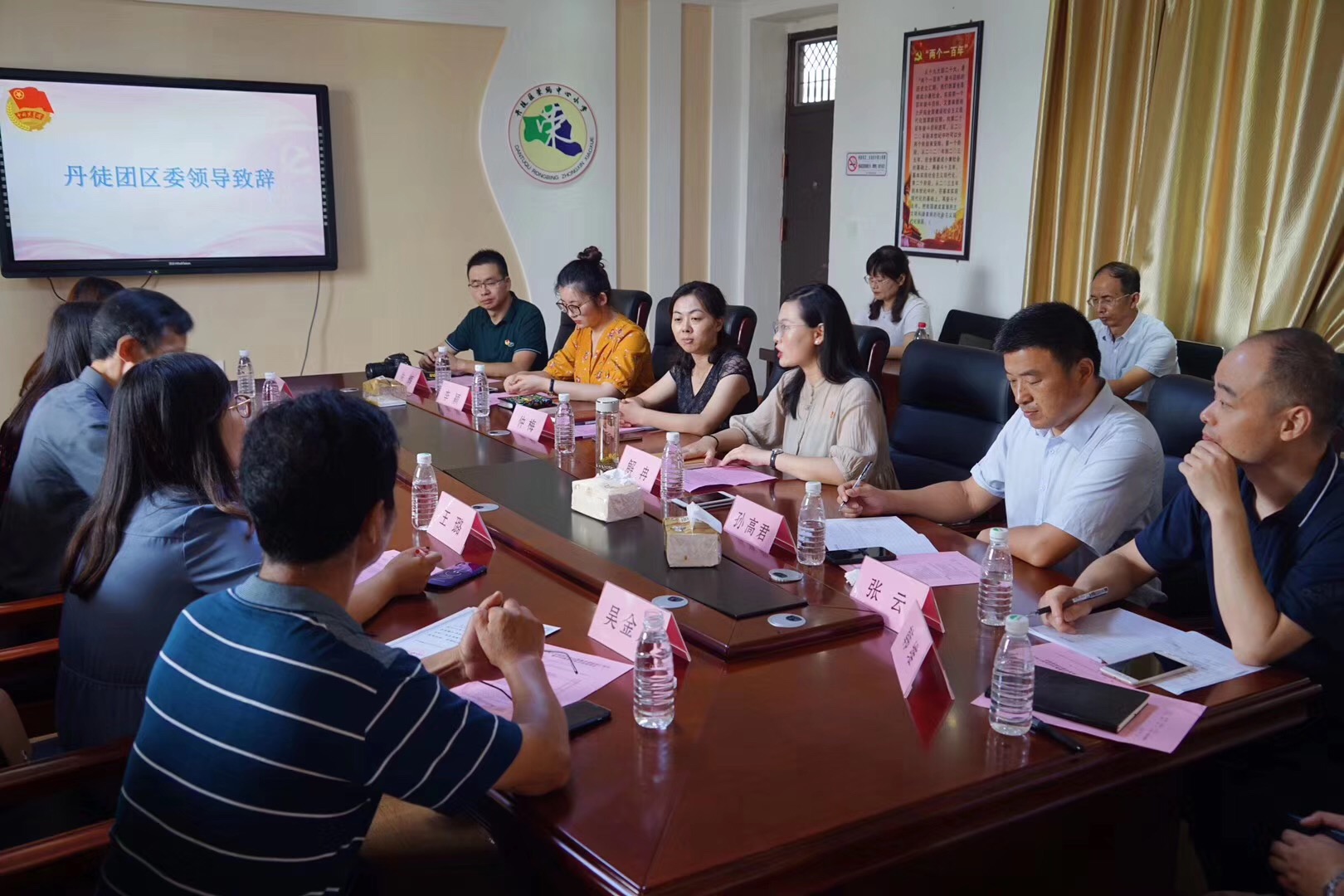 7月22日,学院党委书记雷贵荣、副书记朱志梅、团委书记王璐、辅导员蒋艺晴一行来到位于茅山革命老区的镇江市丹徒区荣炳盐资源区留守儿童服务中心,由我院牵头组织的筑梦乡村志愿教学团队自7月5日起即依托中心开展义务支教,与村民同吃同住,服务60余名乡村留守儿童。荣炳盐资源区党工委书记仲梅、丹徒团区委书记谢冉、副书记李颖、荣炳中心小学校长张云、丹徒教育局团委书记朱辉等地方职能部门领导一同抵达中心。座谈会上,支教同学进行了专题汇报,地方领导对学校的组织表示感谢,对同学们的表现给予了充分肯定。荣炳留守儿童服务中心负责人吴金川老师还转达了来自学生家长的高度赞扬。雷书记表示,暑期社会实践是学校引导同学走进社会、服务基层的大好时机,感谢地方政府、组织对同学们的关心与关照,希望同学们能够通过实践,将书本知识、课堂知识有效运用,在社会的广阔天地间受教育、长才干、做贡献。随后,朱书记代表学院向留守儿童服务中心捐赠图书,吴金川老师代表中心向同学们颁发志愿服务证书。