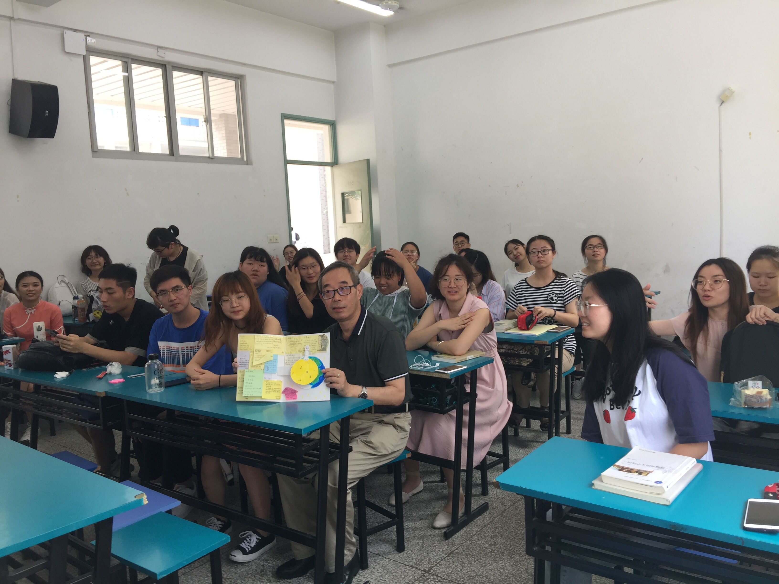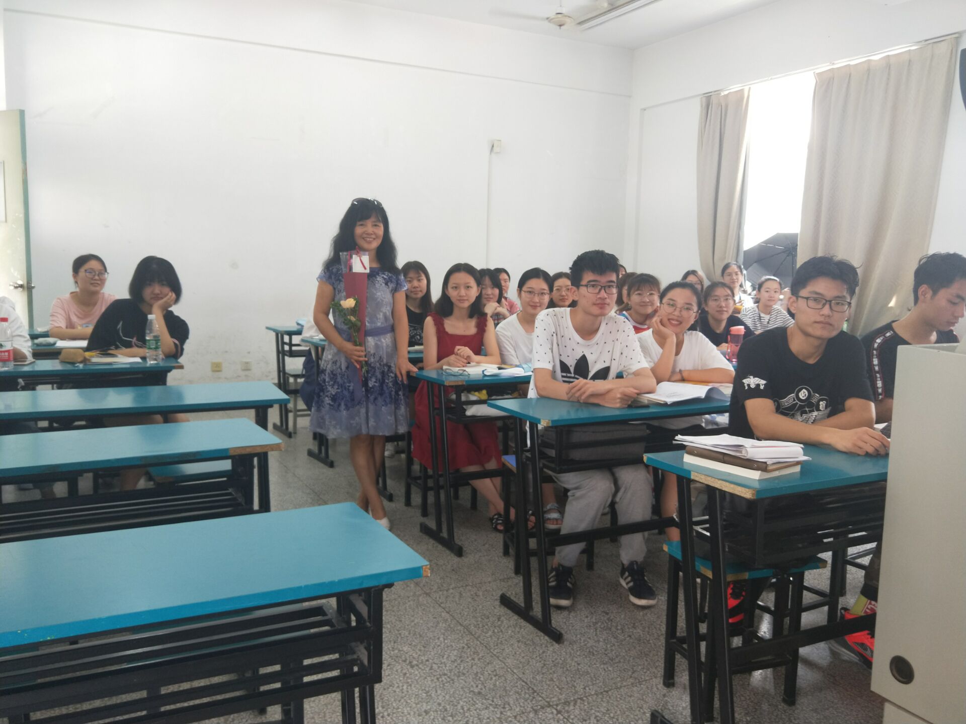 9月10日,学院党委朱志梅副书记、工会主席钱婧老师与辅导员来到教室,共同走访慰问上课老师,向老师们转达学院的深深祝福。同学们以积极昂扬的风貌迎接着上课老师的到来。上课铃声响起时,全体起立,向老师们道一声“节日快乐”、“老师您辛苦了”,小小举动饱满着学生对于老师的感恩之情。课间时分,学院各班级自发开展了送祝福活动。一张张贺卡,写满了同学们的真挚话语;一桃一李,寓意老师们桃李满园;一束鲜花,祝福老师们的从教生涯一路芬芳……