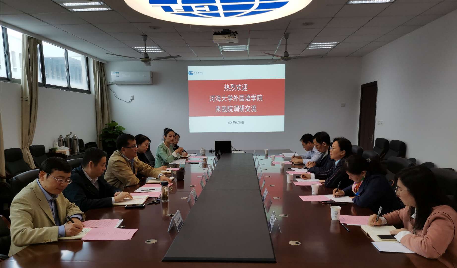 10月16日,张海榕院长率队赴南京航空航天大学外国语学院调研,双方重点就“十四五”规划编制、学科建设、青年教师培养、国际合作与交流、基层党建和学生工作等方面展开交流。南航外国语学院院长范祥涛主持会议。