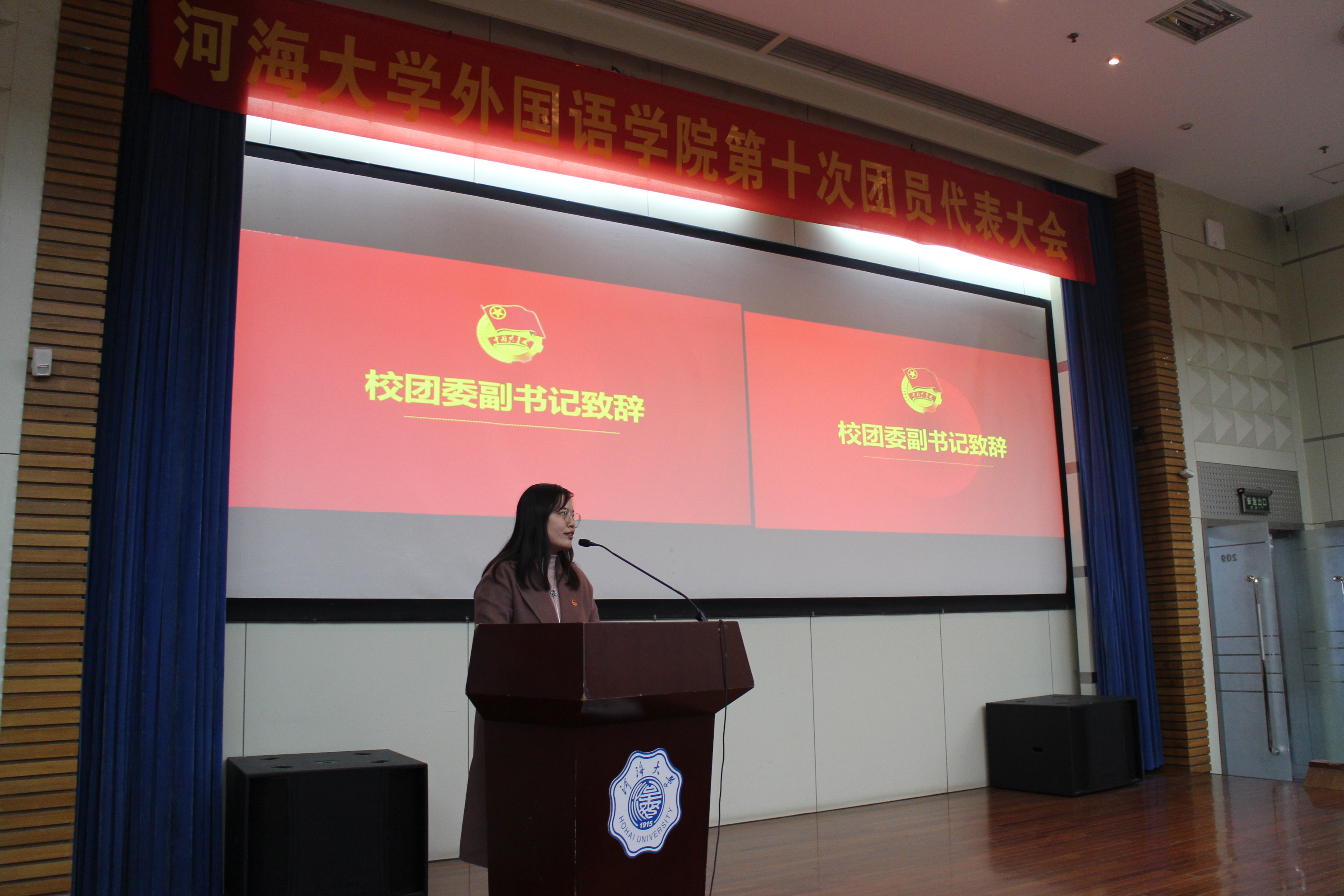 11月30日下午,外国语学院第十次团员代表大会在江宁校区会议中心报告厅隆重召开。共青团河海大学委员会副书记王璐、外国语学院党委书记雷贵荣、外国语学院院长张海榕、外国语学院副院长季莉、外国语学院党委副书记张春雷、各兄弟学院团委书记、外国语学院各年级辅导员以及外国语学院研究生、本科生共计220名代表参加此次大会。