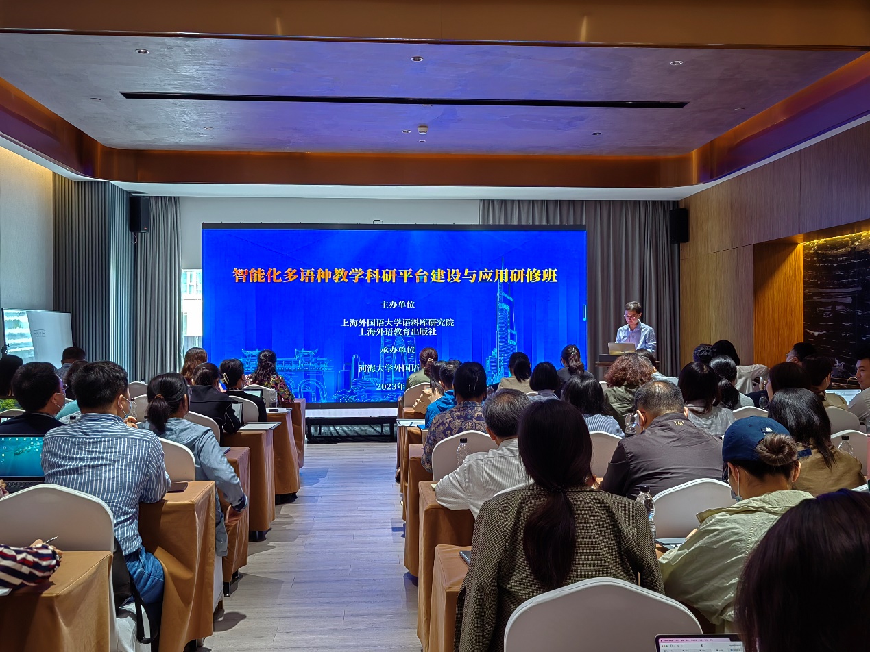此次研修班由上海外国语大学语料库研究院与上海外语教育出版社联合主办、河海大学外国语学院承办。来自省内各高校共80名外语骨干教师线下参加了研修。(王剑)
