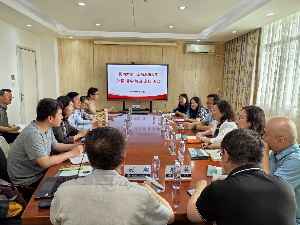6月17日,我院院长张海榕、党委书记笪学军率队赴上海海事大学外国语学院开展调研交流。上海海事大学外国语学院院长张滟、党委书记李品友等领导班子成员及系部负责人参加座谈,双方围绕学科建设、办学特色和人才培养等核心议题展开交流。我院系部主任、支部书记代表参加调研。