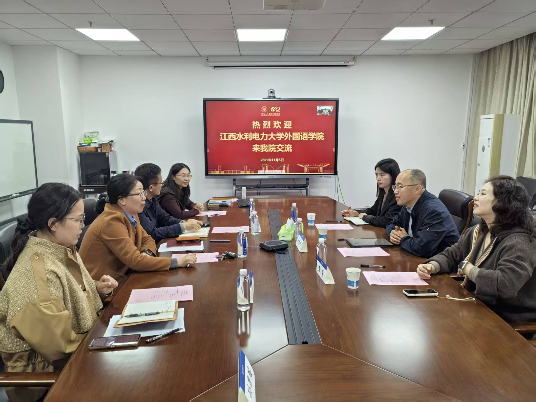 116日,江西水利电力大学外国语学院党委书记宋志刚一行来我院调研交流,外国语学院领导班子成员,英语系主任、英语系法语系党支部书记参加了交流,双方就“十五五”建设规划、专业建设、党建与业务融合等议题深入探讨。会议由院长张海榕教授主持。